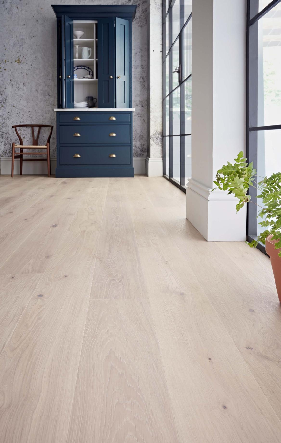 Our white flooring collection features stunning white oak flooring (Koli Oak) and whitewashed wood flooring (Manoa) that instantly transform a room. These light tones are ideal for smaller bedrooms or window-limited basements, as they reflect natural and artificial light to create a sense of expansive space. For a textured, coastal look, explore our Climate collection, which includes bleached and limed oak engineered flooring that highlights the natural grain while keeping the palette crisp and clean.